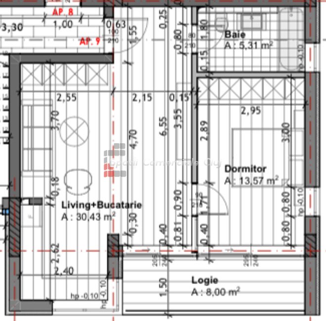 » 2 camere, 1 konyha, 1 fürdőszoba, 43 m2