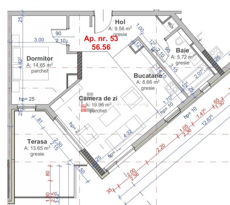 » 2 camere, 1 konyha, 1 fürdőszoba, 56 m2