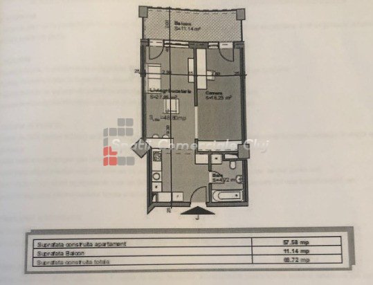 » 2 camere, 1 konyha, 1 fürdőszoba, 56 m2