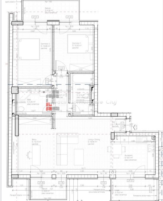 » 3 camere, 1 konyha, 1 fürdőszoba, 68 m2