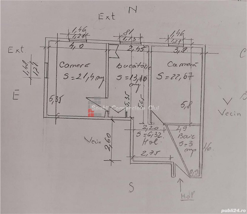 A Spatii Comerciale Cluj eladásra kínál egy 2 szobás lakást, amely egy épület 1. emeletén található Florestibe...