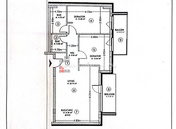 » 3 camere, 1 konyha, 1 fürdőszoba, 82 m2