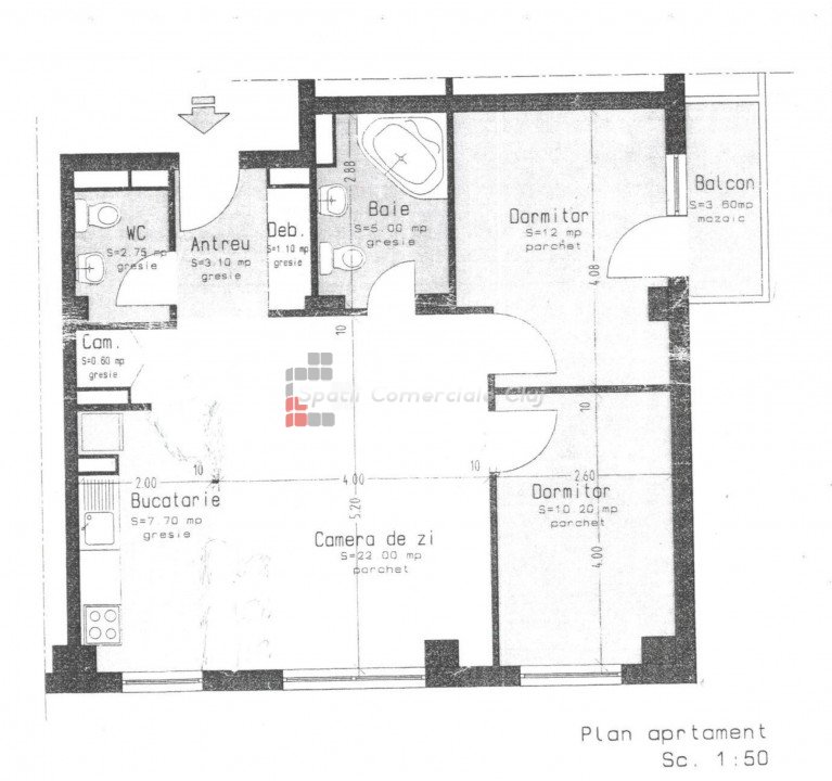 » 3 camere, 1 konyha, 1 fürdőszoba, 56 m2