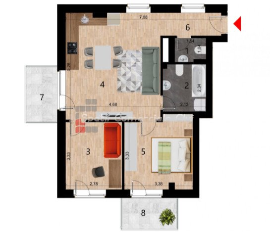 » 3 camere, 1 cuisine, 1 salle de bain, 68 m2