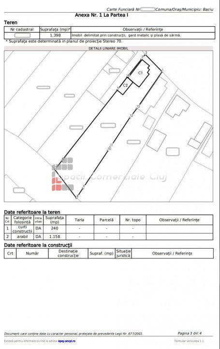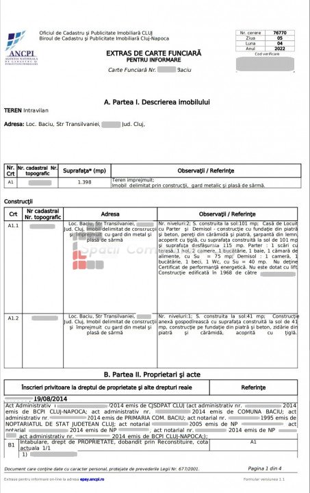 A Spatii Comerciale Cluj eladásra kínál egy 4 szobás házat, ideális helyen, Bácsfaluban (Baciu).