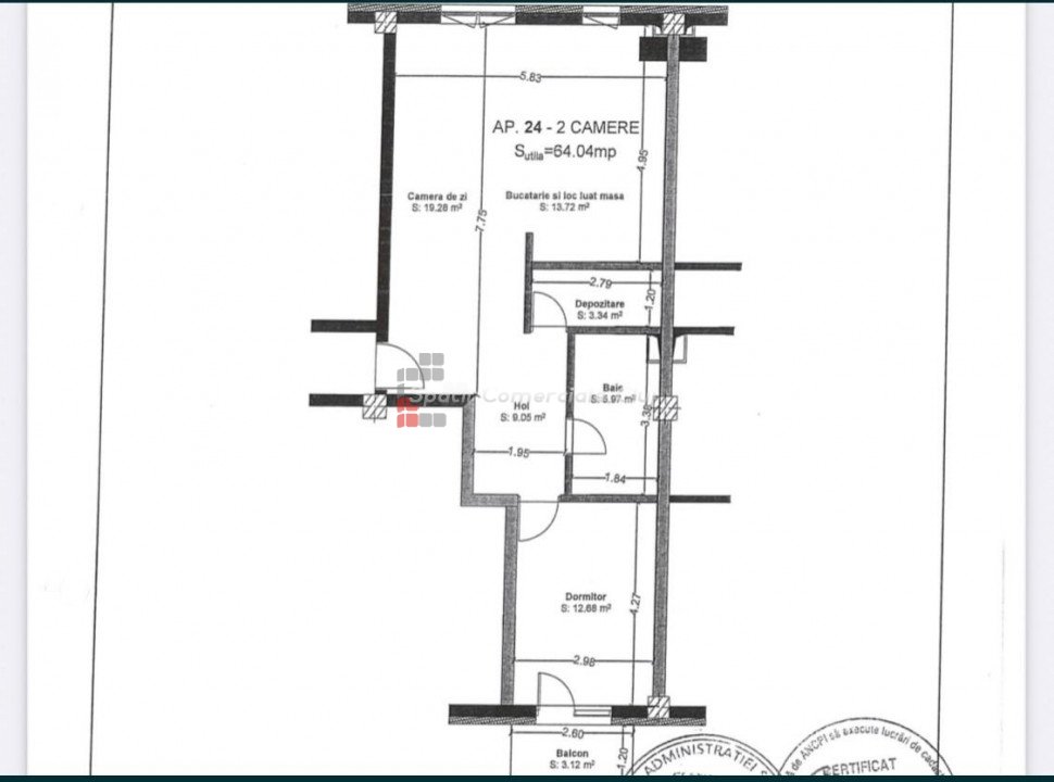 » 2 camere, 1 konyha, 1 fürdőszoba, 55.64 m2