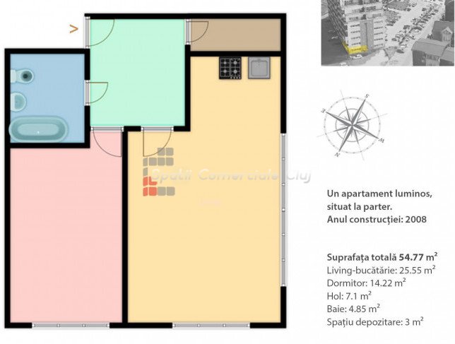 A Spatii Comerciale Cluj a Dambul Rotund negyedben eladó egy 38 négyzetméteres, földszinti, közlekedős lakást, me...