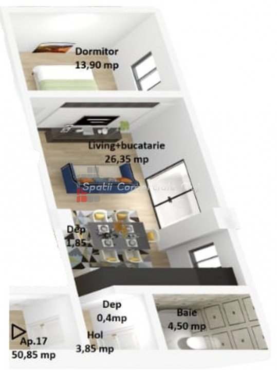A Spatii Comerciale Cluj eladásra kínál egy 2 szobás lakást Baciuban, a Petrom utcában található épületben.