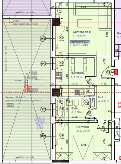» 2 camere, 1 konyha, 1 fürdőszoba, 52 m2