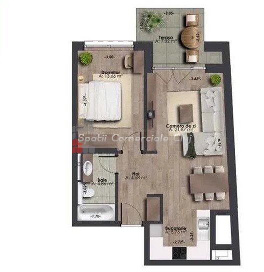 A Spatii Comerciale Cluj kétszobás lakást kínál Florestiben, a Catanelor utcában, egy csendes környéken, 3 percr...