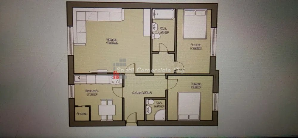 Spatii Comerciale Cluj vous propose à la vente un appartement mitoyen de 3 pièces, d'une surface utile de 71 m² au re...