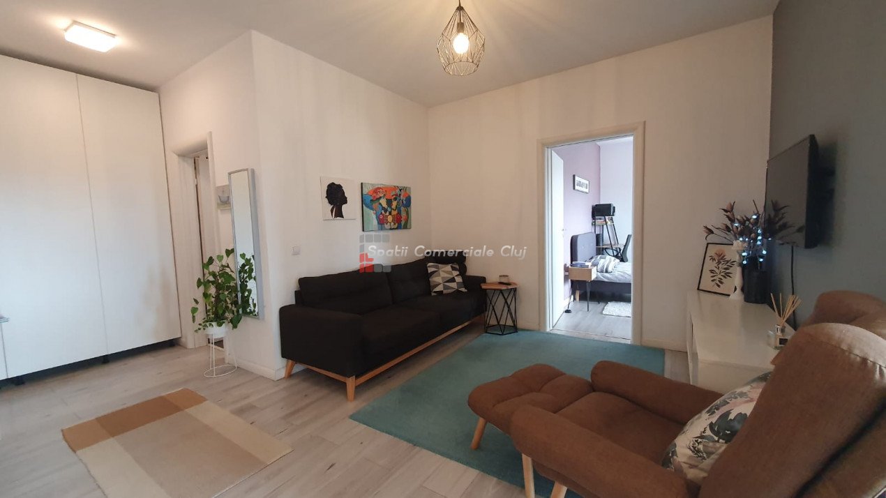 Spatii Comerciale Cluj vend un appartement meublé de deux pièces à Floresti, rue Sesul de Sus, à quelques minutes de...