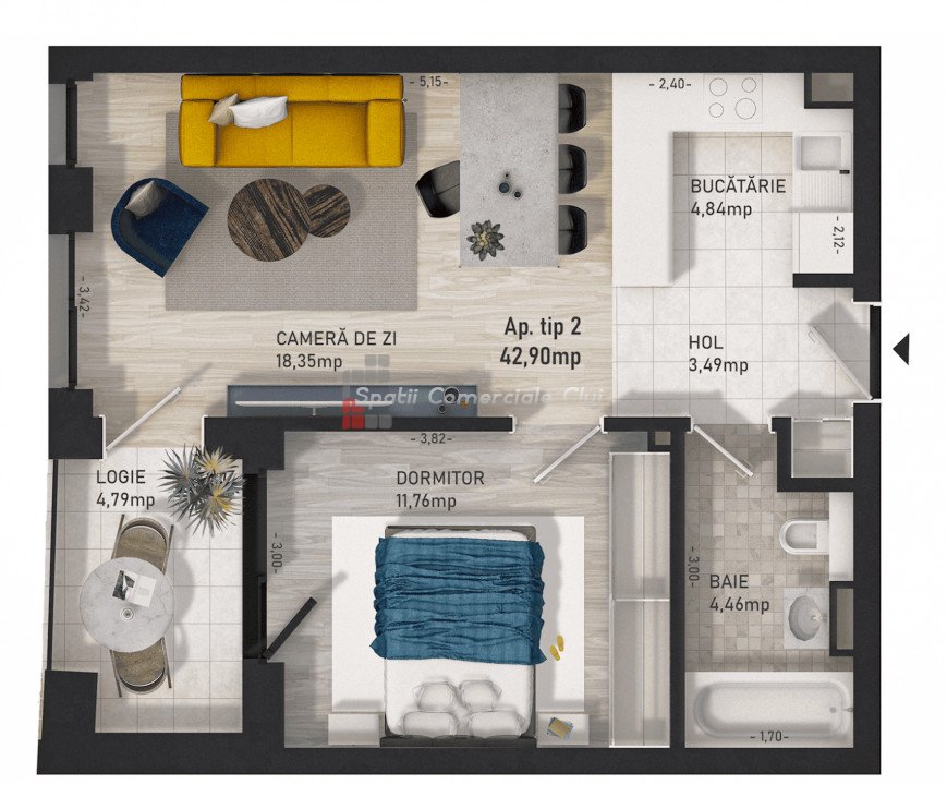Spatii Comerciale Cluj propose à la vente un superbe appartement mitoyen de 2 pièces, situé au rez-de-chaussée d'un ...