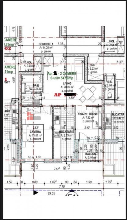 » 2 camere, 1 konyha, 1 fürdőszoba, 53 m2