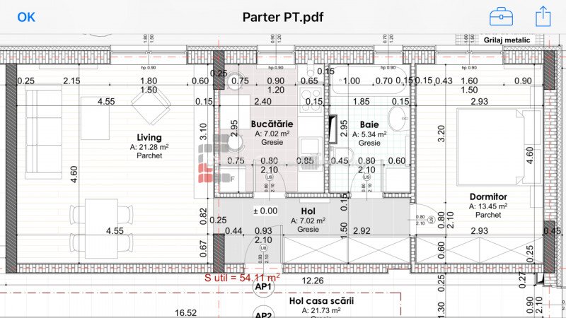 » 2 camere, 1 konyha, 1 fürdőszoba, 52 m2