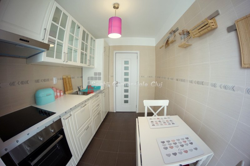 A Spatii Comerciale Cluj kiadó egy modern, kétszobás lakás a Dunarii utcában, az Intre Lacuri negyedben.