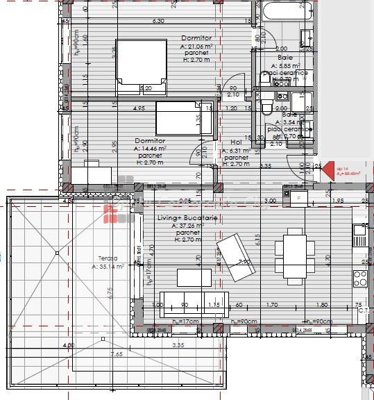 » 3 camere, 1 cuisine, 1 salle de bain, 54 m2