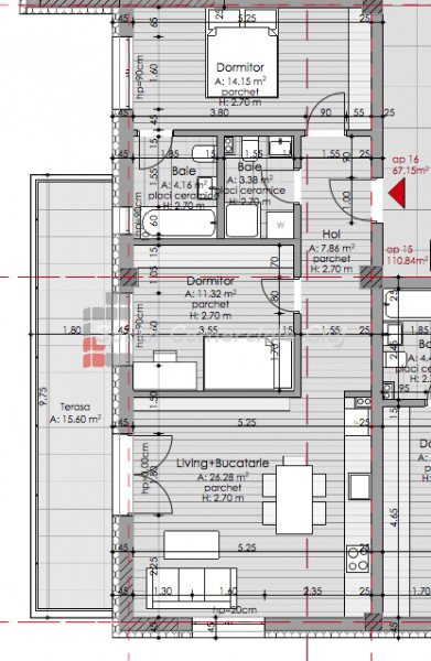 » 3 camere, 1 konyha, 1 fürdőszoba, 62 m2