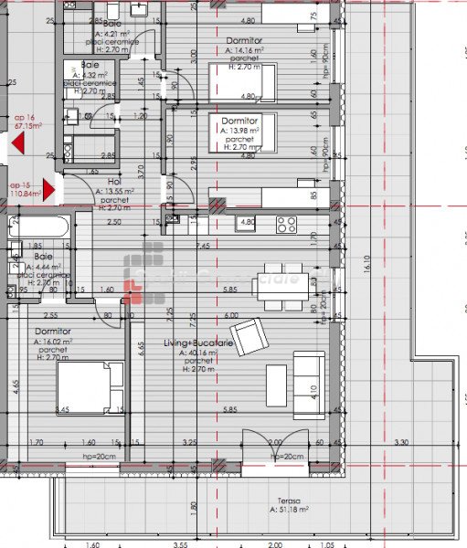 » 4 camere, 1 konyha, 1 fürdőszoba, 63 m2