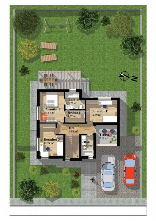 » 3 camere, 2 salles de bains, 95 m2, terrain 100 m2