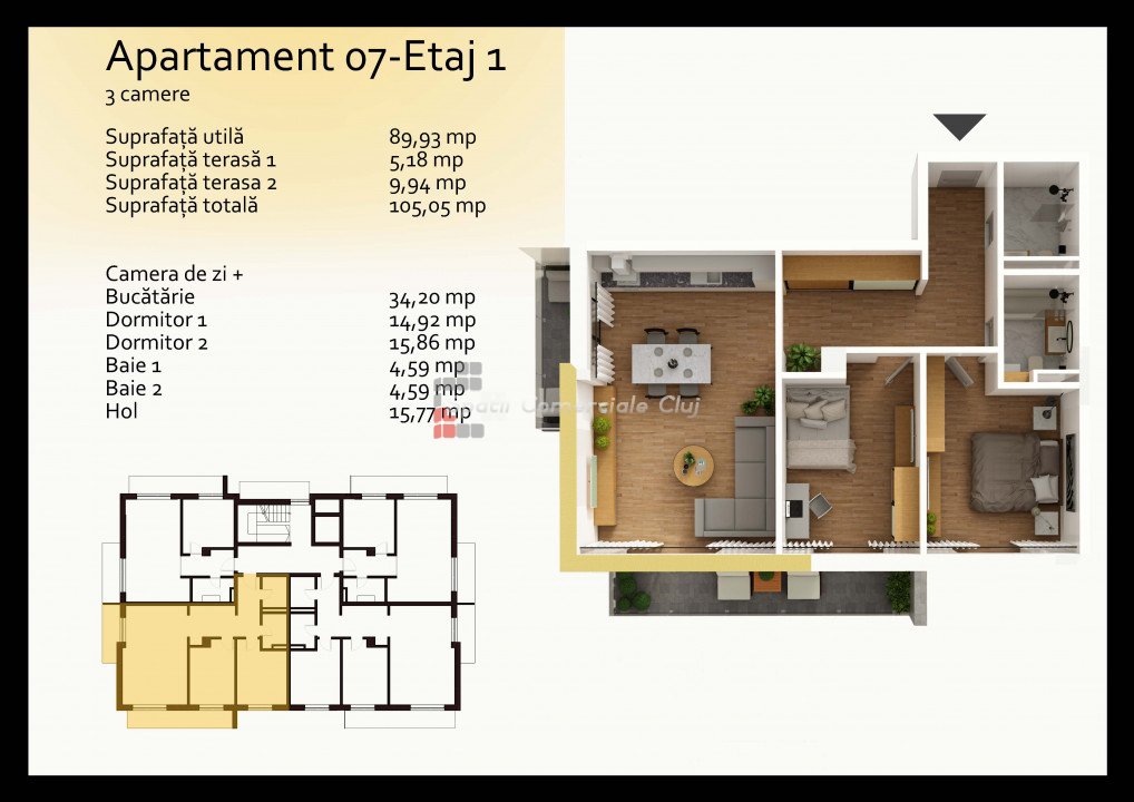 Spatii Comerciale Cluj agence Cluj-Napoca offre pour vente appartement avec 3 chambres, situé à Cluj-napoca, zone Iris...