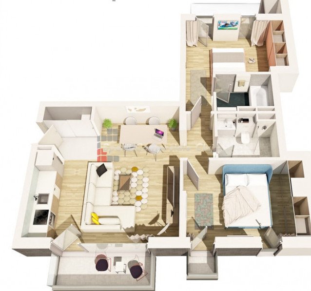 » 3 camere, 1 konyha, 1 fürdőszoba, 62 m2