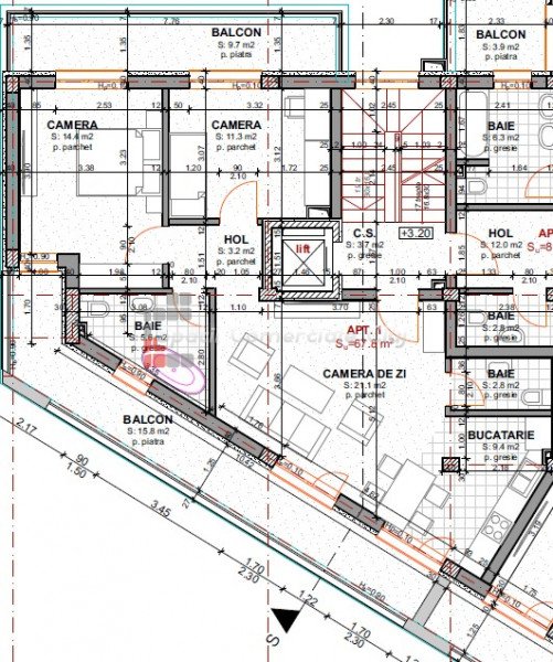 » 3 camere, 1 konyha, 1 fürdőszoba, 70 m2