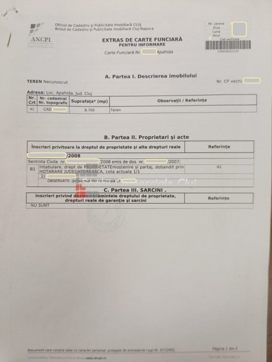A vendre terrain Intravilan, d'une superficie de 816 m² dans la localité de Deusu, commune de Chinteni.