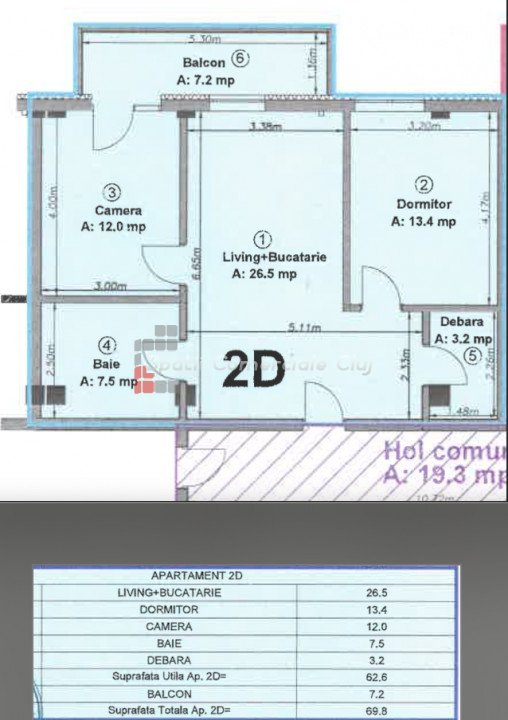 » 3 camere, 1 konyha, 1 fürdőszoba, 62 m2