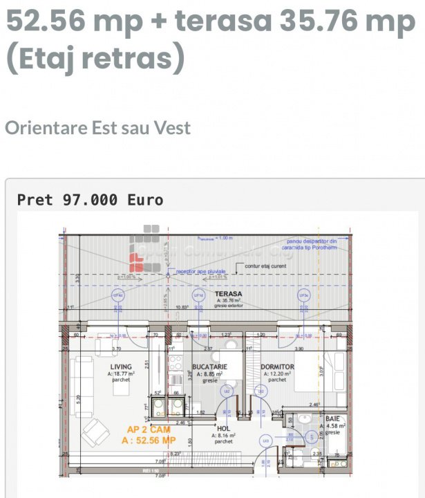 » 2 camere, 1 konyha, 1 fürdőszoba, 55.47 m2