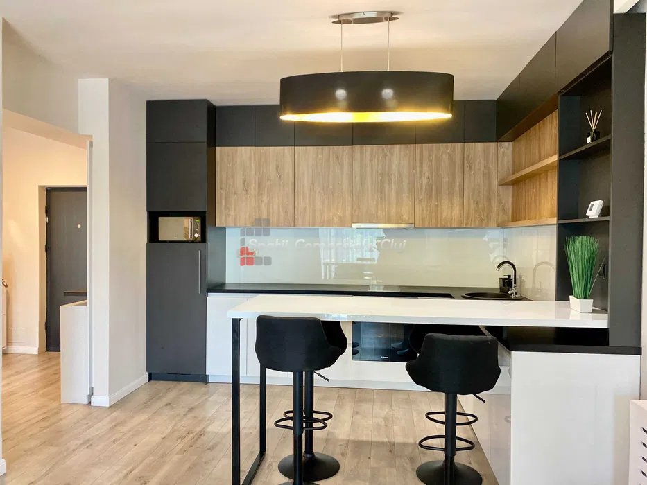 Kiadó egy modern, kétszobás lakás a Zorilor negyedben, egy négyszintes épület 4. emeletén. A lakás 56 négyzetm...