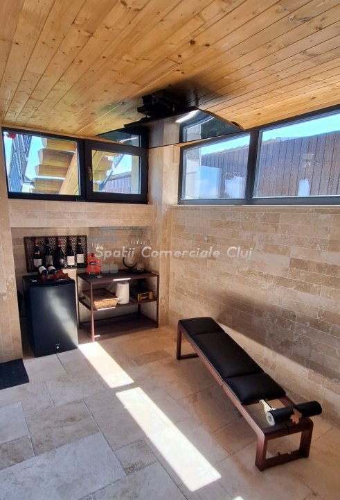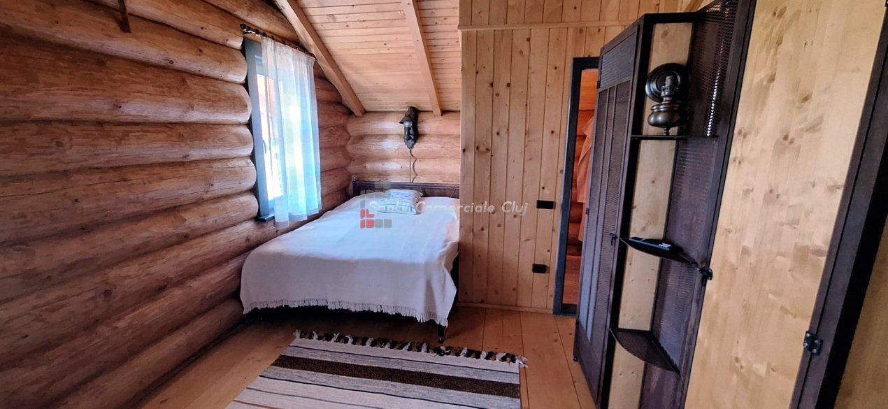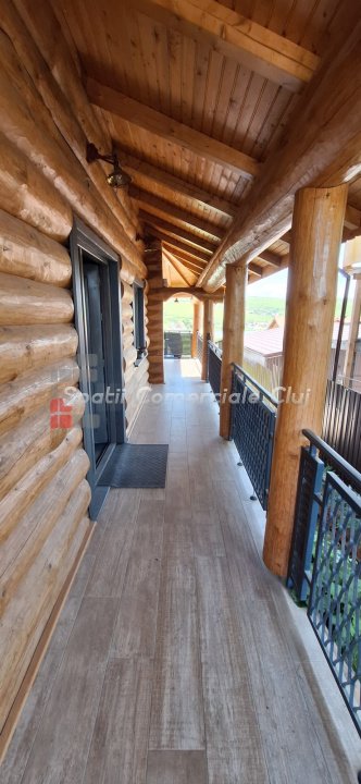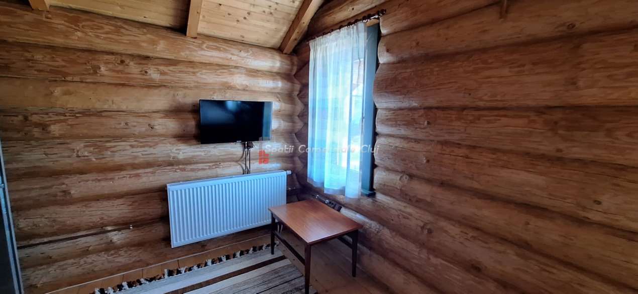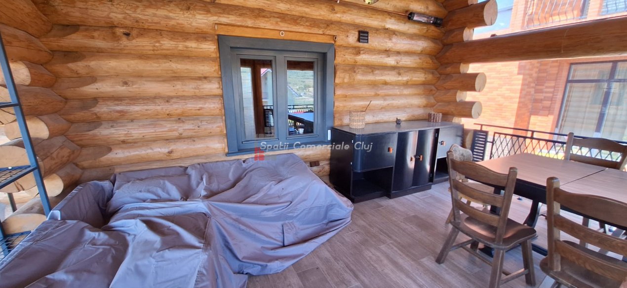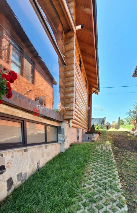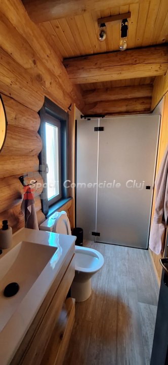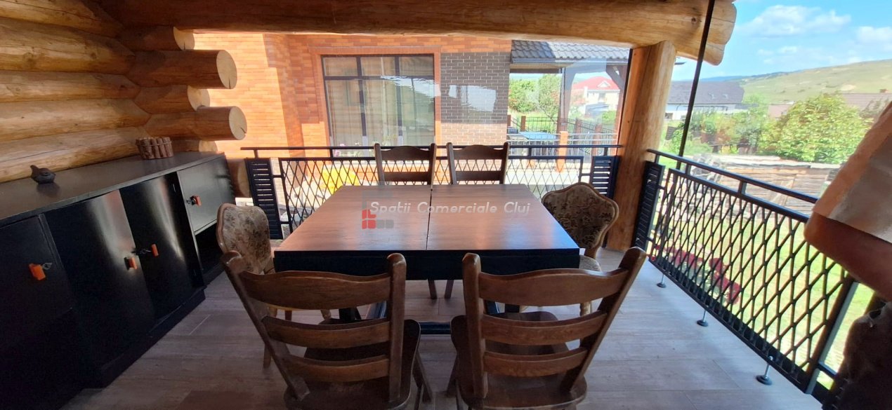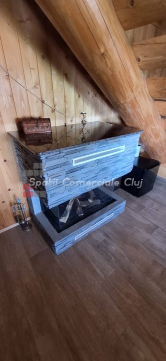 EXCLUSIVITATE – Proprietate de lux disponibilă pentru închiriere în Câmpenești, la doar 17 km de Cluj-Napoca Spatii Comerciale Cluj are plăcerea de a vă prezenta, în exclusivitate, o casă de locuit deosebită, o veritabilă proprietate de lux, amplasată într-una dintre cele mai liniștite zone ale localității Câmpenești, la doar 17 km de centrul orașului Cluj-Napoca. Construită pe baza unui proiect personal, din bușteni de lemn și cu o eficiență energetică ridicată, casa impresionează prin arhitectura sa unică și dotările premium. Distribuția spațiului este inteligent gândită, oferind confort și funcționalitate. Compartimentare: Parter: Bucătărie spațioasă, dormitor, baie și terasă de acces. Etaj: Două dormitoare și o baie elegantă. Demisol: Zonă de SPA & GYM, spațiu de relaxare, saună, jacuzzi, minibucătărie cu frigider pentru băuturi fine. Încălzirea se realizează eficient cu ajutorul centralei proprii, prin calorifere și pardoseală (în bucătărie), dar și prin șemineul amplasat la parter. Întregul sistem de încălzire poate fi controlat de la distanță, direct de pe telefon. Dotări suplimentare: Terasă protejată cu perdele automate și sistem de încălzire cu infraroșu. Grădină amenajată cu gazon și flori, sistem automatizat de irigație, controlabil de la distanță. Zonă de barbeque, beci spațios și uscat, sistem modern de gestionare a apei. Această proprietate este ideală pentru cei care își doresc confort, liniște și rafinament într-un cadru natural deosebit. Pentru mai multe informații sau pentru a programa o vizionare, vă rugăm să ne contactați. Vă așteptăm cu drag!