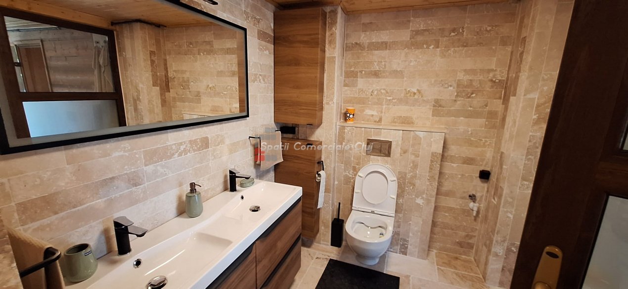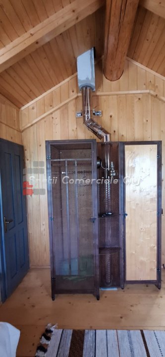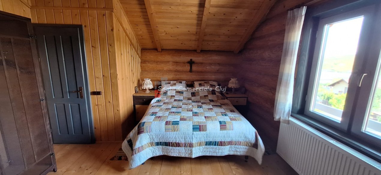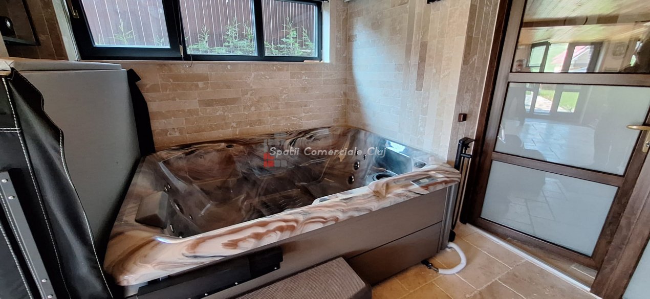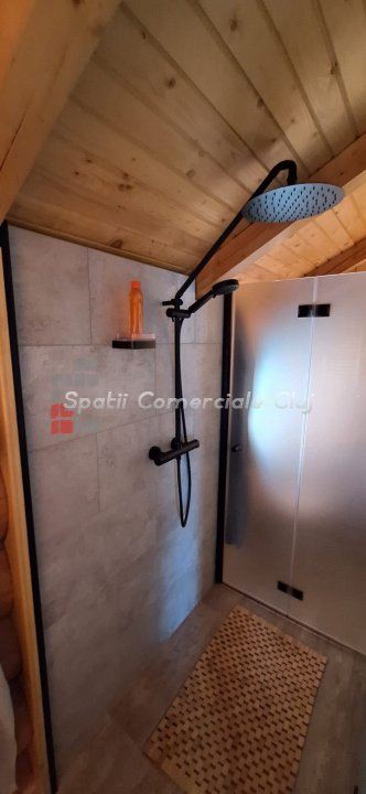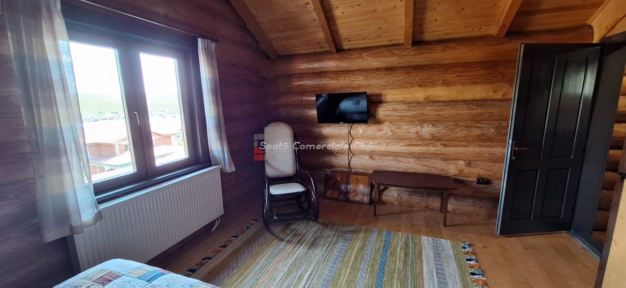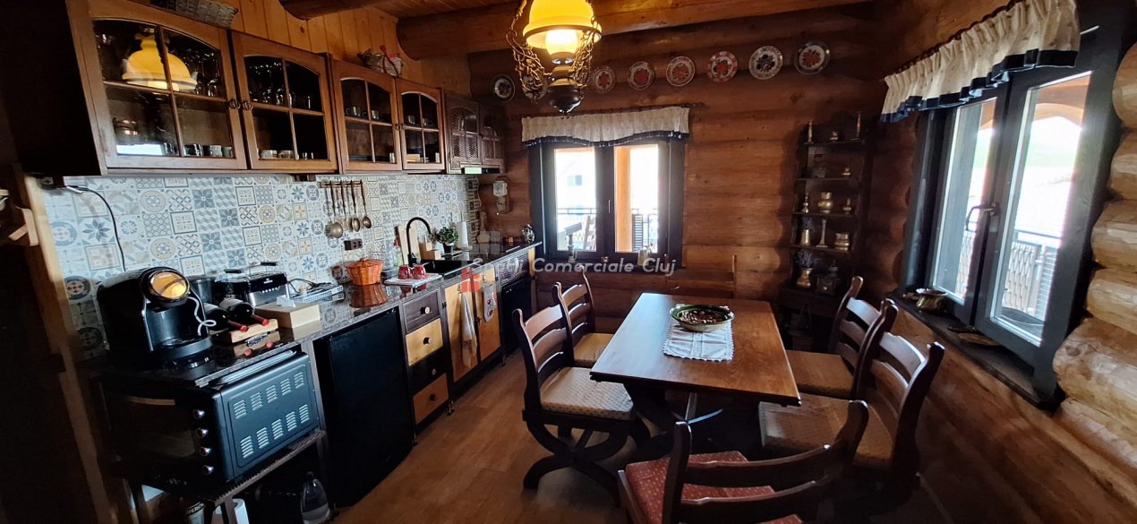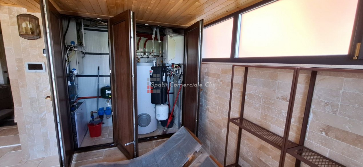 EXCLUSIVITATE – Proprietate de lux disponibilă pentru închiriere în Câmpenești, la doar 17 km de Cluj-Napoca Spatii Comerciale Cluj are plăcerea de a vă prezenta, în exclusivitate, o casă de locuit deosebită, o veritabilă proprietate de lux, amplasată într-una dintre cele mai liniștite zone ale localității Câmpenești, la doar 17 km de centrul orașului Cluj-Napoca. Construită pe baza unui proiect personal, din bușteni de lemn și cu o eficiență energetică ridicată, casa impresionează prin arhitectura sa unică și dotările premium. Distribuția spațiului este inteligent gândită, oferind confort și funcționalitate. Compartimentare: Parter: Bucătărie spațioasă, dormitor, baie și terasă de acces. Etaj: Două dormitoare și o baie elegantă. Demisol: Zonă de SPA & GYM, spațiu de relaxare, saună, jacuzzi, minibucătărie cu frigider pentru băuturi fine. Încălzirea se realizează eficient cu ajutorul centralei proprii, prin calorifere și pardoseală (în bucătărie), dar și prin șemineul amplasat la parter. Întregul sistem de încălzire poate fi controlat de la distanță, direct de pe telefon. Dotări suplimentare: Terasă protejată cu perdele automate și sistem de încălzire cu infraroșu. Grădină amenajată cu gazon și flori, sistem automatizat de irigație, controlabil de la distanță. Zonă de barbeque, beci spațios și uscat, sistem modern de gestionare a apei. Această proprietate este ideală pentru cei care își doresc confort, liniște și rafinament într-un cadru natural deosebit. Pentru mai multe informații sau pentru a programa o vizionare, vă rugăm să ne contactați. Vă așteptăm cu drag!