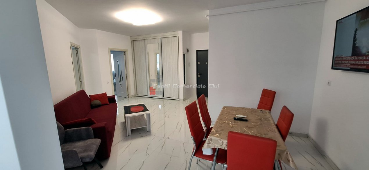 Spatii Comerciale Cluj va ofera spre inchiriere un superb apartament cu trei camere semidecomandate, situat in Floresti, zona BMW. Imobilul, construit de o firma serioasa are principala calitate de a fi foarte aproape de transportul in comun si magazine. Orientarea este est, avand soare in prima parte a zilei. Finisajele sunt de cea mai buna calitate, apartamentul este la prima inchiriere. In afara spatiului util mentionat veti dispune si de o parcare subterana. Pentru alte detalii sau pentru programarea unei vizite nu ezitati sa ma contactati!