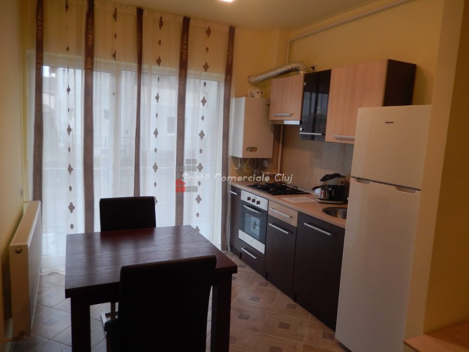 Spatii Comerciale Cluj va prezinta spre inchiriere un apartament cu 2 camere semidecomandat in zona Iulius Mall. Apartamentul se afla la etajul 1 unui imobil nou dispus pe 7 niveluri, avand o suprafata utila de 40 mp. Compartimentarea a fost gandita astfel: - 1 living tip open-space cu bucatarie complet echipata si canapea - 1 dormitor cu pat matrimonial - 1 baie moderna - hol - balcon Exista posibilitatea inchirieri unui loc de parcare contra cost. *Apartamentul este disponibil din 1 aprilie. Contactati-ne pentru informatii suplimentare sau pentru a stabili o vizionare!