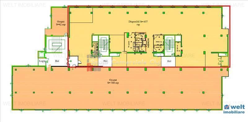 pret accesibil, open space, imobil modern, zona centrala Spatiul se afla intr-o cladire de birouri moderna, de clasa A, situata in zona centrala a orasului. Suprafata disponibila la etajul 1 este de 637 mp.