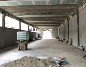 De inchiriat in zona Amera Tower - Velpitar, la intrarea in Baciu, o constructie in curs de finalizare, in suprafata de 400mp. Spatiul se potriveste pentru depozitare sau productie. Modificari posibile in functie de chirias. Acces auto in interior, pe rampa si descarcare la rampa. Acces TIR in curte, zona de parcare, trifazic. Pret si conditii negociabile.