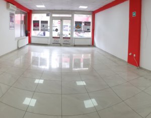 Va oferim spre inchiriere un spatiu comercial de 100 mp, situat in zona hotelului Paradis Acesta este compartimentat astfel: sala de vanzare cu intrare din strada, grup sanitar, debara si birou/depozit in spate. Spatiul dispune de 3 aparate de aer conditionat, tavan casetat iluminat LED, iar podeaua este acoperita cu gresie de calitate superioara. Beneficiaza de un vad comercial bun, existand posibilitatea de aprovizionare prin spate. Se preteaza foarte bine pentru spatiu de birou sau alte activitati comerciale, cu exceptia celor de alimentatie publica.