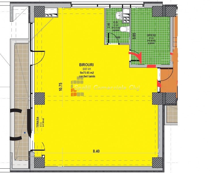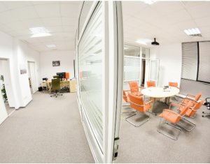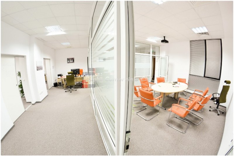 De inchiriat un spatiu de birouri in suprafata de 88mp utili, cu terasa proprie de 8mp, situat intr-o cladire de birouri clasa A din zona Dorobantilor. Zona este recunoscuta pentru prezenta firmelor nationale si internationale, zona corporate aproape de centrul orasului. Cladirea dispune de toate specificatiile business, serviciu de receptie si paza, HVAC, cablaje cu fibra optica. Spatiul este compus din o sala open space, chicineta, grupuri sanitare barbati/femei. Contra cost se poate opta pentru locuri de parcare in subteranul imobilului. Se aplica un service charge de 3eur/mp + TVA. *** poze cu titlu de prezentare