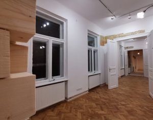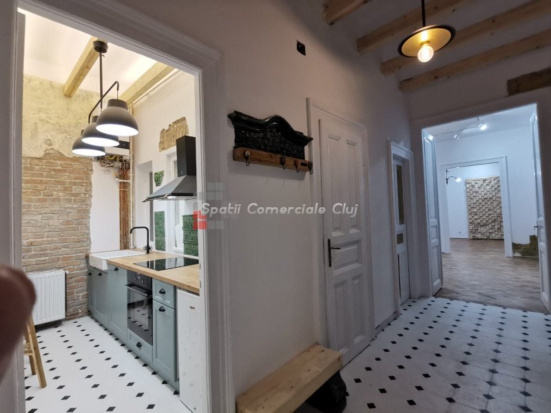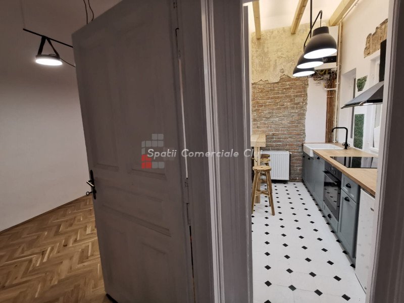 De inchiriat in centrul orasului, spatiu de birou, renovat cu caracter si atentie la detalii. Situat intr-o curte interioara de pe bdul 21 Decembrie in zona hotel Victoria, acest spatiu va va surprinde prin eleganta si volumul incaperilor, imbinatia elementelor moderne cu cele clasice. Un spatiu de lucru modern si elegant. Se compune din hol de intrare central, 2 incaperi cu trecere, o incapere separata, bucatarie/oficiu echipat complet, wc de serviciu si baie.