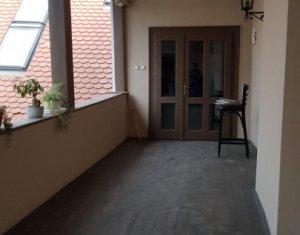 Va prezentam spre inchiriere spatiu la mansarda inalta si luminoasa, situat ultracentral, zona Piata Unirii. Are acces din curtea interioara, cu o frumoasa terasa proprie acoperita. Suprafata este de 130mp, spatiu inalt si luminos, ideal pentru activitati de birou sau intretinere corporala. Grupurile sanitare sunt separate de acest spatiu.