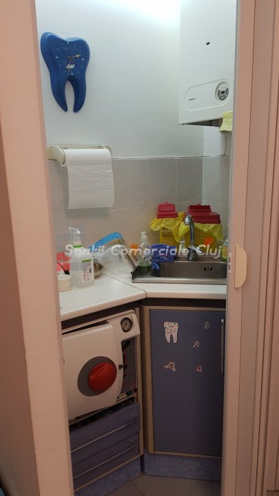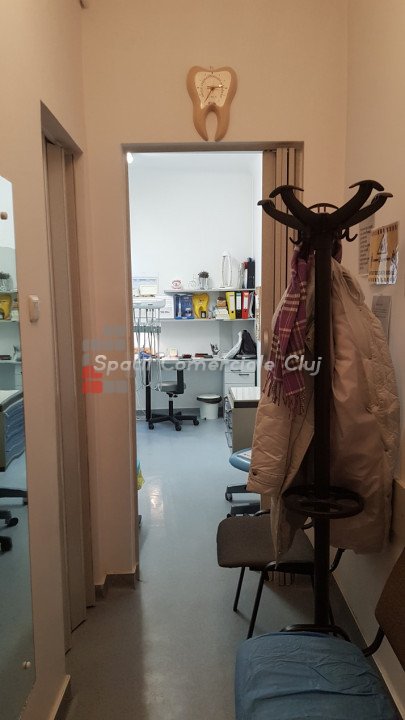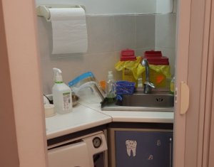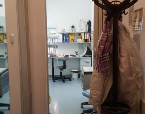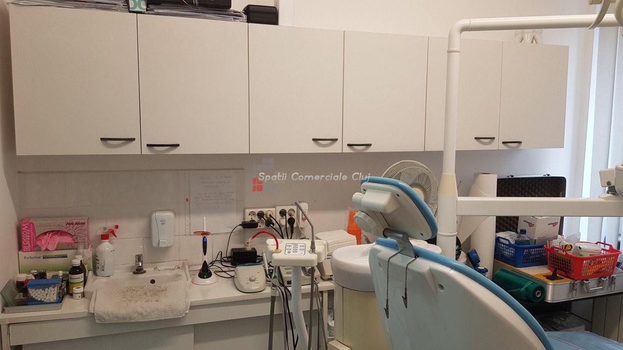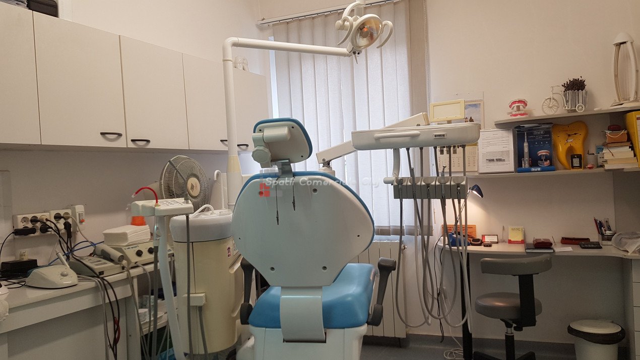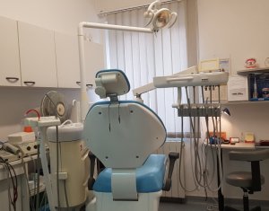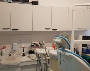 De inchiriat cabinet stomatologic sau o alta activitate medicala conexa! Momentan functioneaza cabinet stomatologic, fiind complet echipat si utilat. Este compus din sala de tratament, sala de asteptare, 2 bai si camera de sterilizare. Inchirierea se face partajat cu proprietarul spatiului. Se accepta unul sau doi medici care sa ocupe restul de timp liber. Pretul de 390 euro reprezinta inchirierea spatiului cu aparatura de baza (scaun, sterilizator etc.). Pentru folosirea aparaturii speciale se perpece o taxa suplimentara. Cheltuielile se impart in mod egal. Se percepe garantie 500 euro.