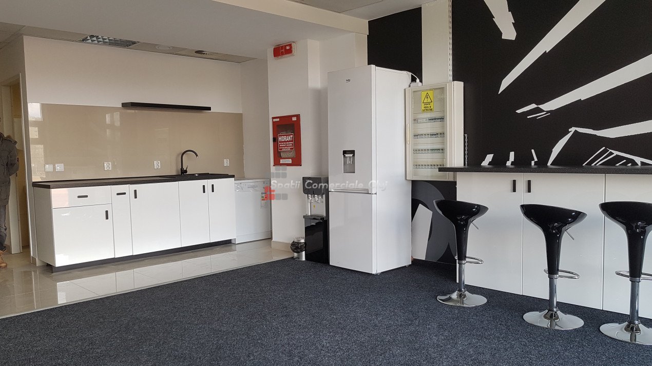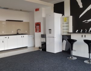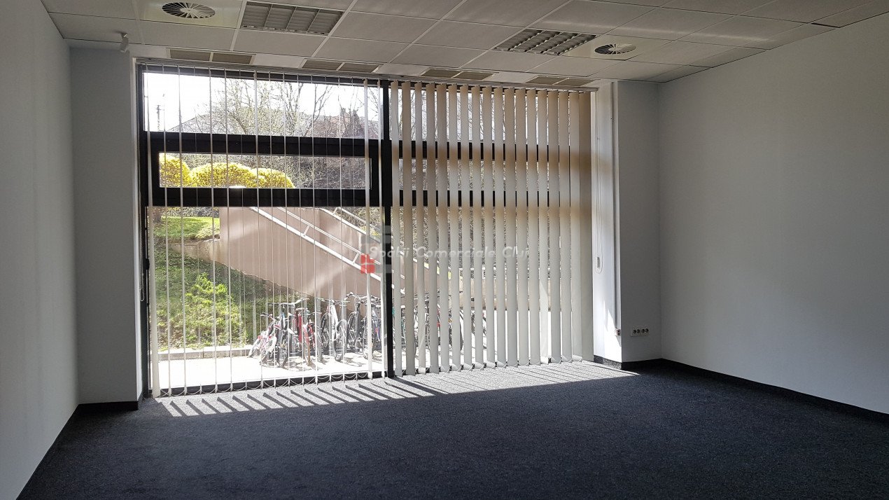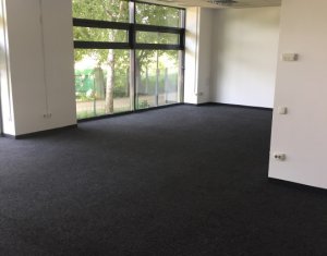 Va prezentam spre inchiriere spatiu pentru activitati de birou sau servicii, situat langa Parcul Rozelor, Winners Club, Plopilor Vest. Suprafata de 362mp este compartimentata in 4 incaperi mari, meeting room, bucatarie echipata, grupuri sanitare si dus. Are sala de conferinte, mocheta, ventiloconvectoare, contorizari separate. Locurile de parcare subterane sunt la pretul de 75 eur/mp. Se poate factura fara TVA.