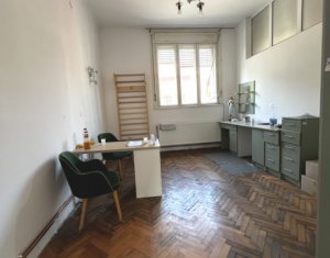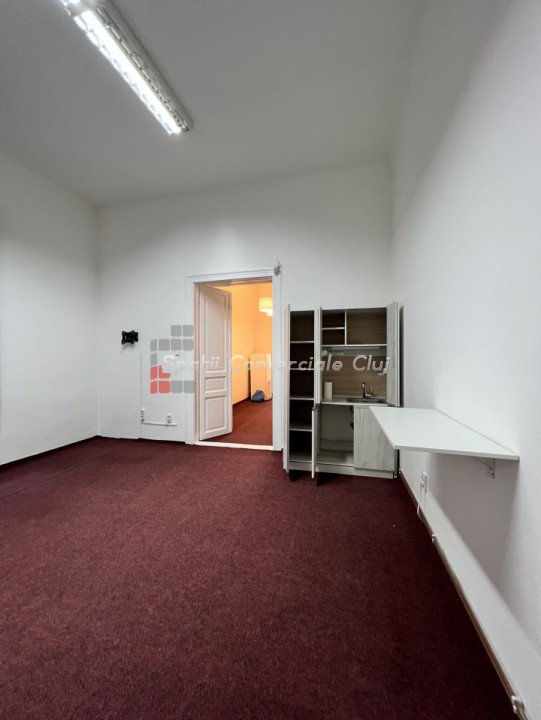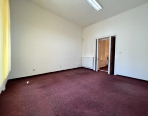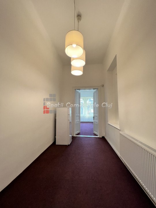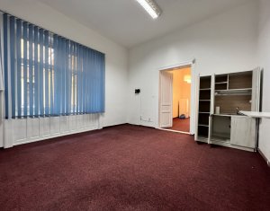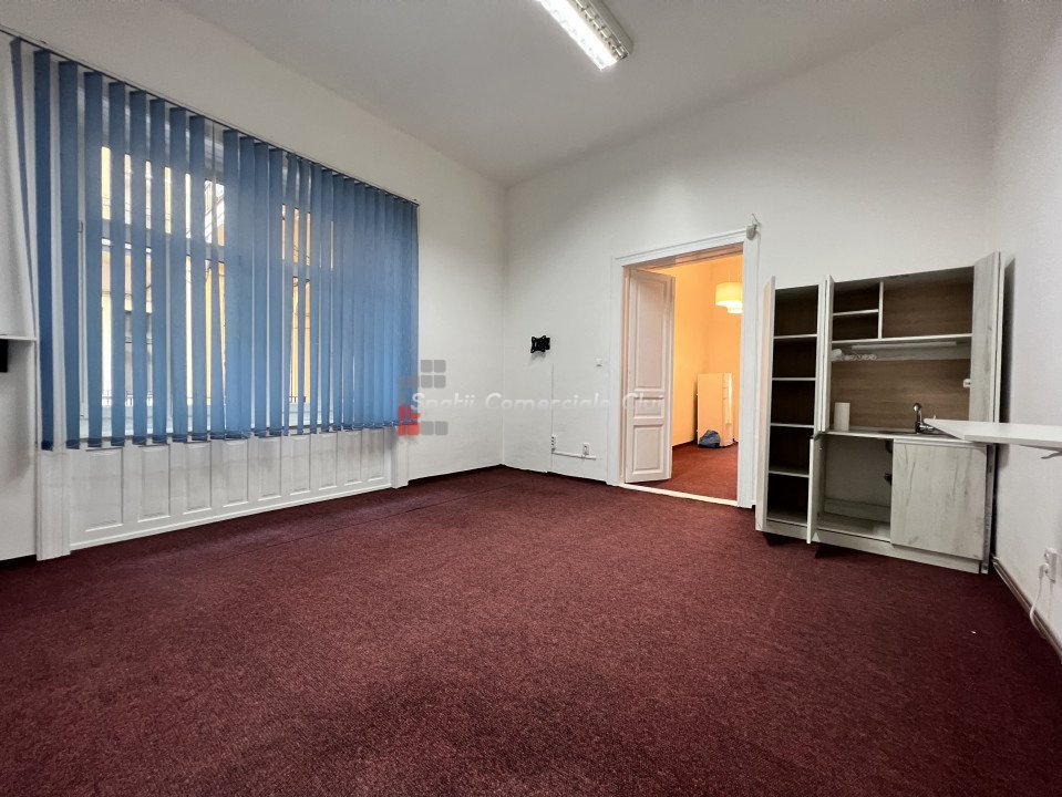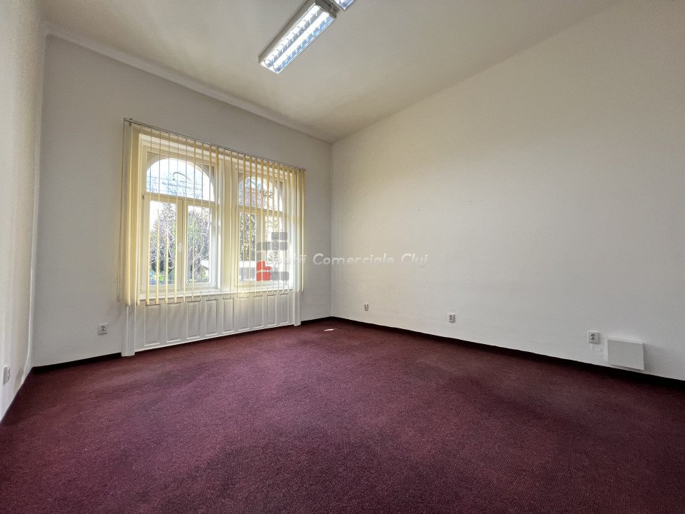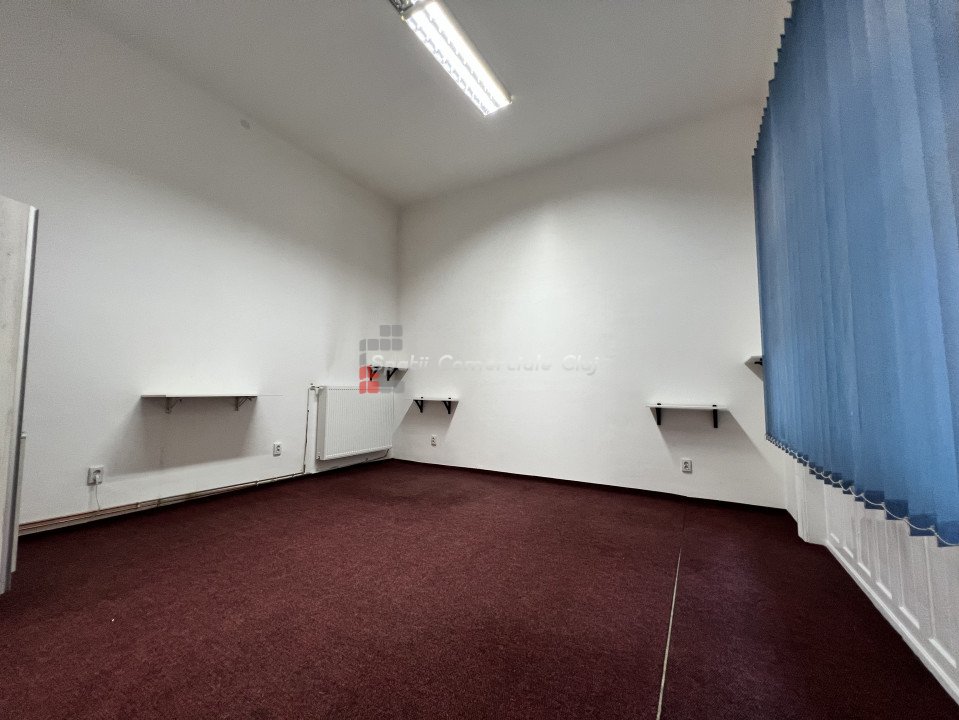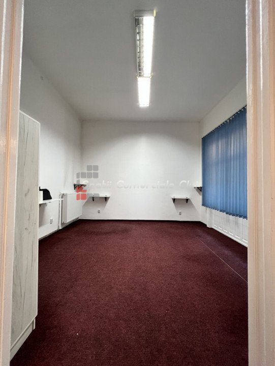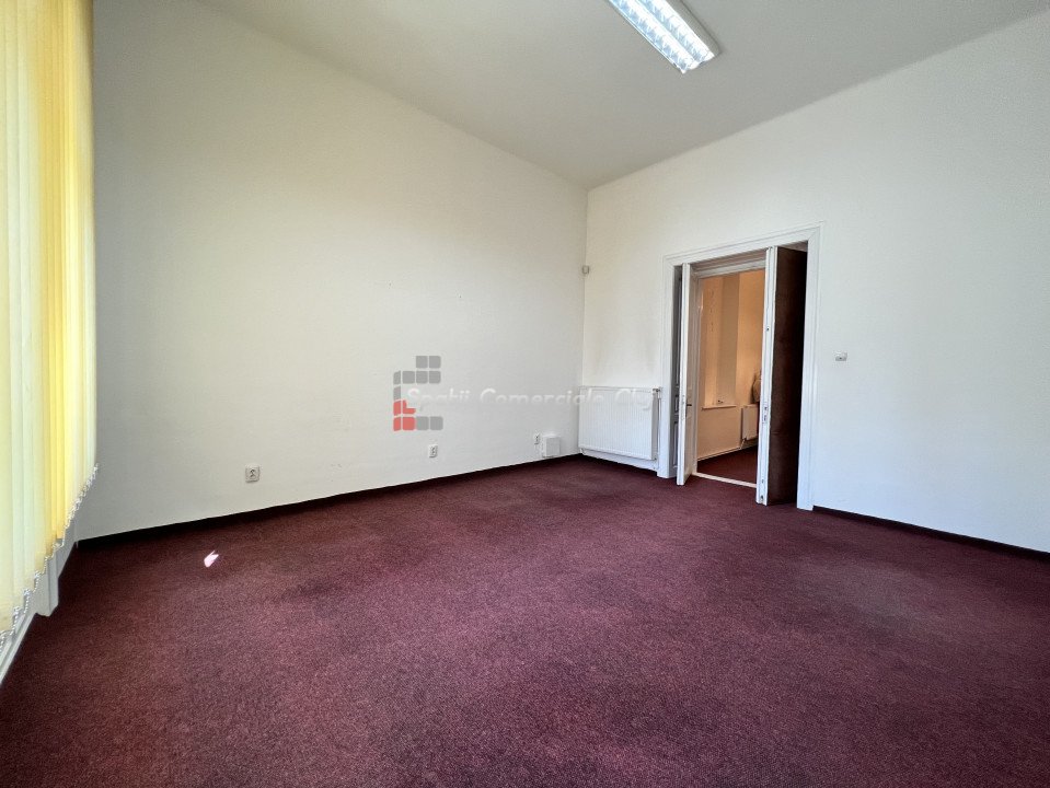 Va prezentam spre inchiriere spatiu pentru birou sau servicii, situat in centru lin statia de bus Regionala CFR. Are suprafata de 63mp si este compartimentat in hol de intrare/receptie generoasa, 2 incaperi spatioase, decomandate, una avand un mic oficiu, si grup sanitar. Posibilitate de parcare in curtea comuna a imobilului, in limita spatiilor libere. Spatiul are ferestre spre bulevard, ideal pentru reclama. Este foarte luminos, calduros, centrala proprie cu calorifere, iluminat led, sistem de alarma parchet masiv si mocheta peste.