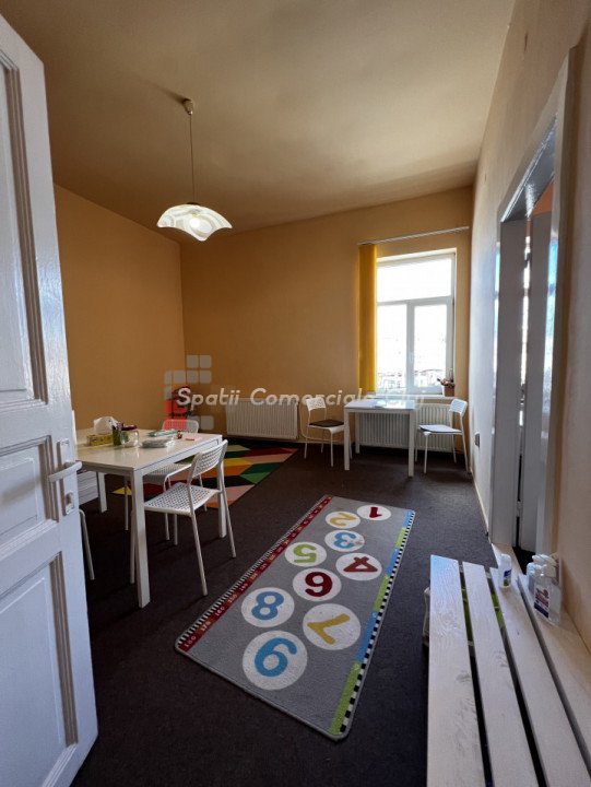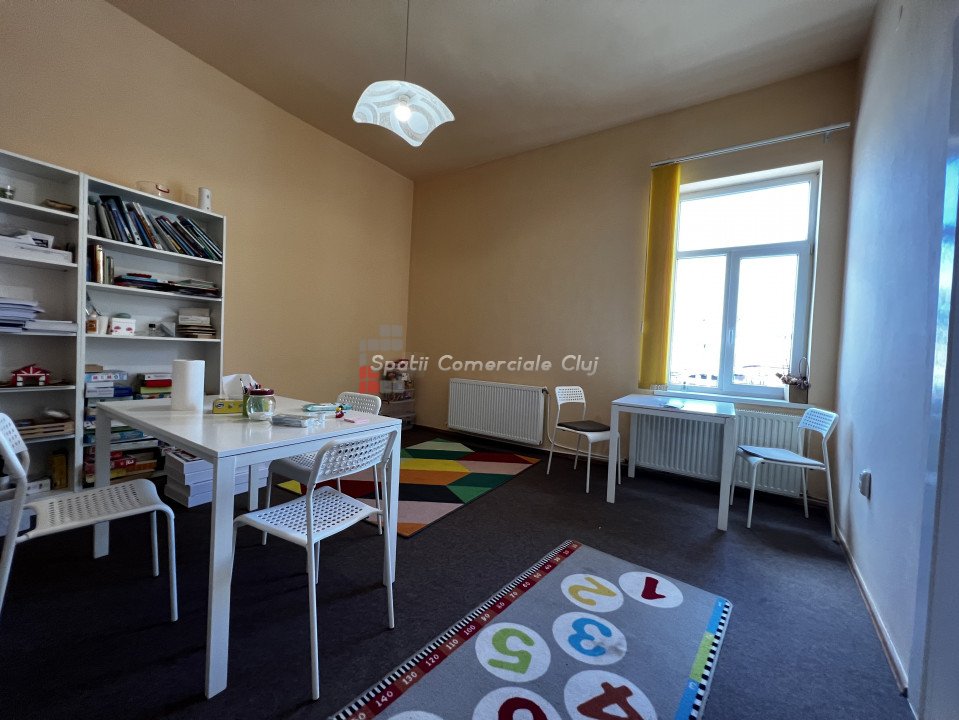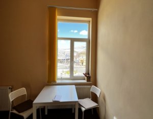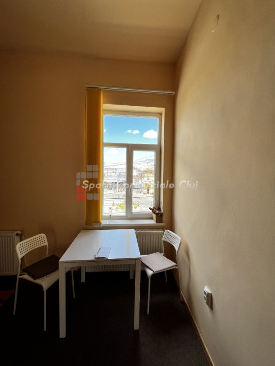 Va prezentam spre inchiriere spatiu pentru activitati de birou sau servicii, situat in Piata Mihai Viteazu, peste drum de Mc Donalds. Este situat la etajul 1 al cladirii, compus din 3 incaperi generoase, 2 grupuri sanitare, bucatarie si terasa comuna. Are centrala proprie, calorifere, geamuri termopan, contorizari individuale. Sub mocheta din camere este parchet masiv. Se inchiriaza nemobilat!