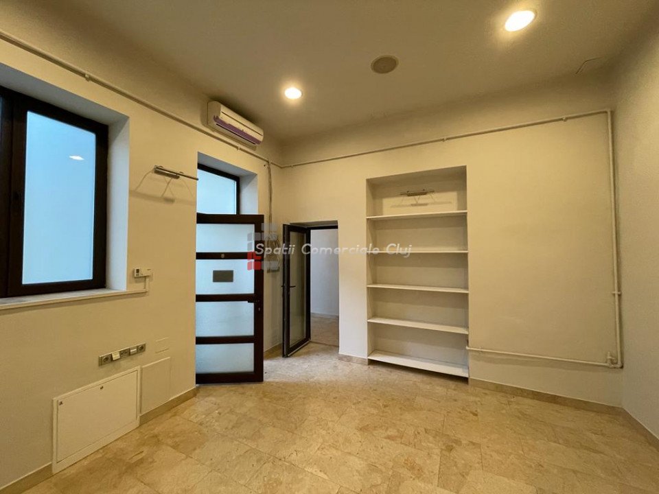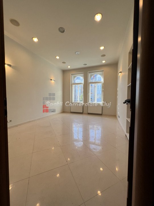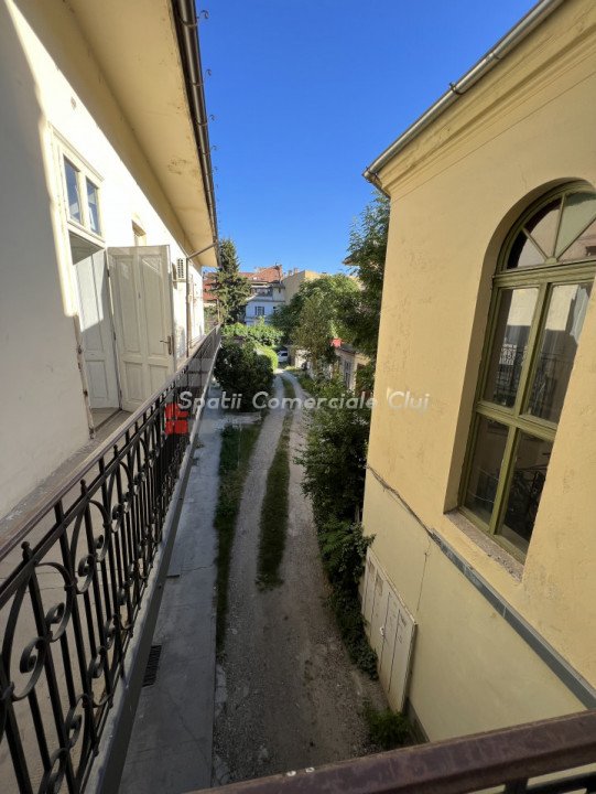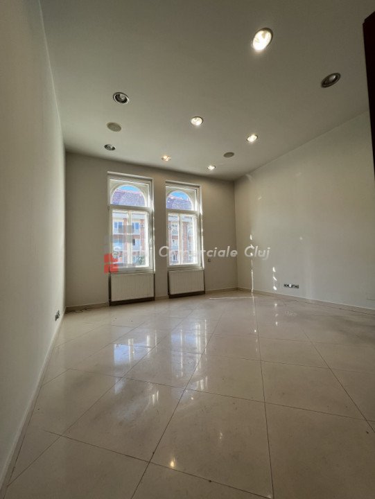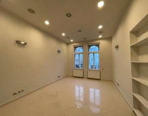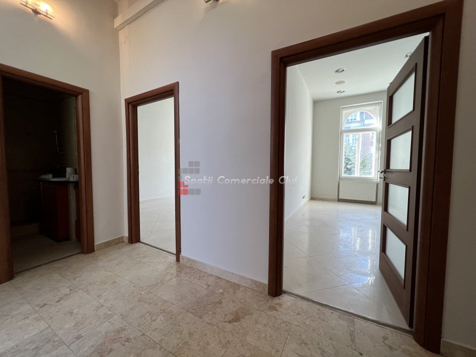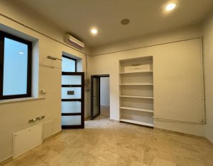 Situat in zona centrala, langa Hotel Victoria, se inchiriaza spatiu pentru activitati de birou, servicii, profesii liberale sau medicale (cu schimbare de destinatie). Suprafata de 108mp este impartita in 3 incaperi (24mp, 38mp, 14mp), hol, grup sanitar si 2 intrari. Se afla la etajul 1, acces auto in curte cu bariera.