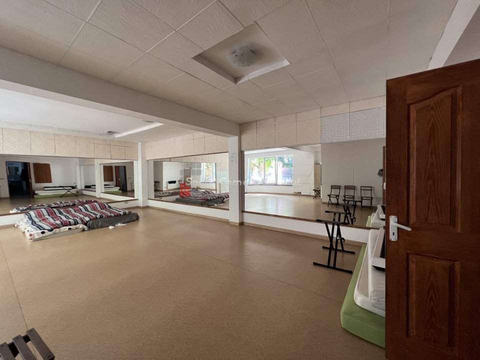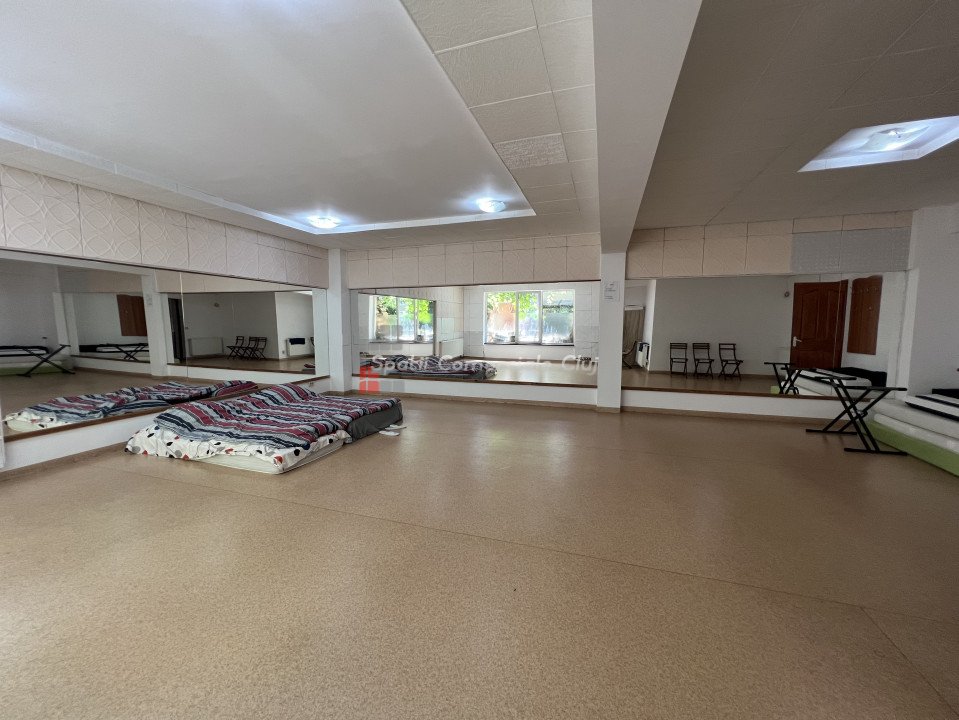 Va prezentam spre inchiriere spatiu pentru activitati sportive - dans, yoga etc., cu destinatie "sala de sport" in acte. Este situat la inceputul strazii Paris, intr-o curte interioara, langa centrul de transfuzie sanguina. Suprafata totala a spatiulu este de 104mp utili, impartit in sala pt activitati 70mp, vestiar si dusuri, hol de intrare/receptie. Spatiul se preda eliberat de mobilier si obiectele din interior. Inchiriere persoana fizica, nu se percepe TVA.