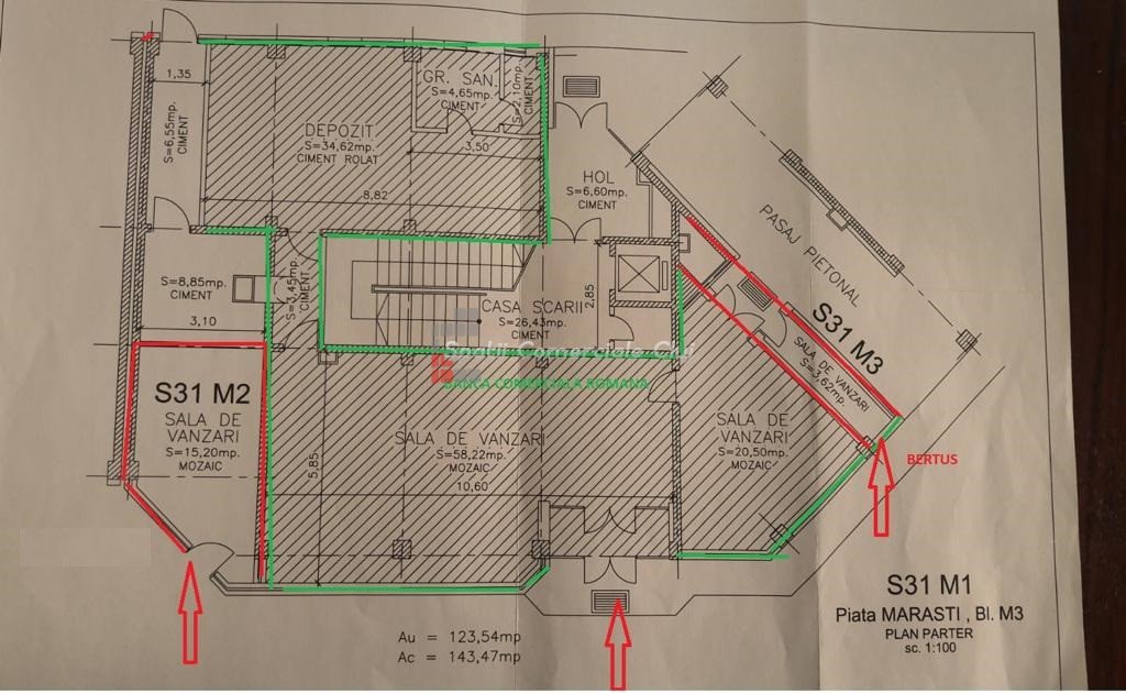 Este situat pe pietonala din zona piata Marasti, una din cele mai cautate zone comerciale. Spatiul se afla la parter cu vitrina generoasa la vad pietonal excelent. Suprafata este 122mp, compusa din sala de vanzare 80mp, depozit si grup sanitar. Exista posibilitate de usa pentru aprovizionare in spate.