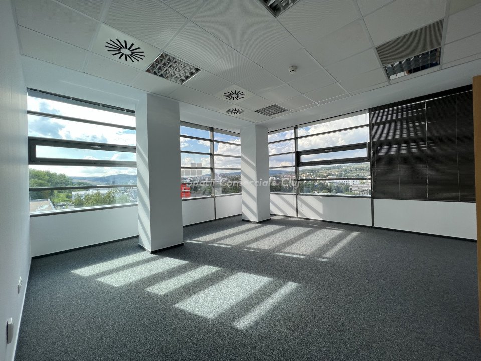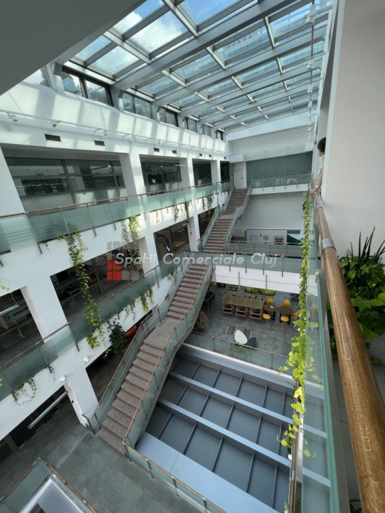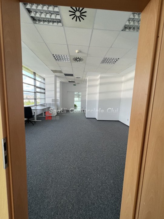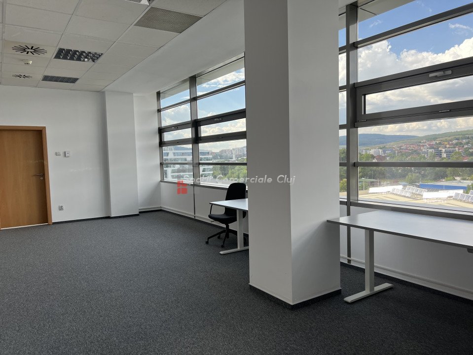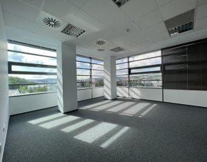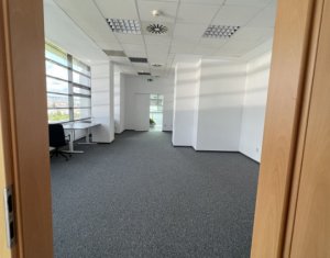 Va prezentam spre inchiriere spatiu pentru activitati de birou, situat intr-o cladire business, clasa A. Este compartimentat in 2 incaperi cu trecere si 2 birouri separate plus un mic depozit/arhiva. Are iluminat LED, aer cald/aer rece cu aport de aer proaspat si control de umiditate. Cladirea dispune de statii de incarcare electrice, restaurante, sala sport, gradina panoramica, zona de relaxare etc. Exista locuri de parcare exterioare la 50eur/buc. Taxa de management este 2.80eur/mp.