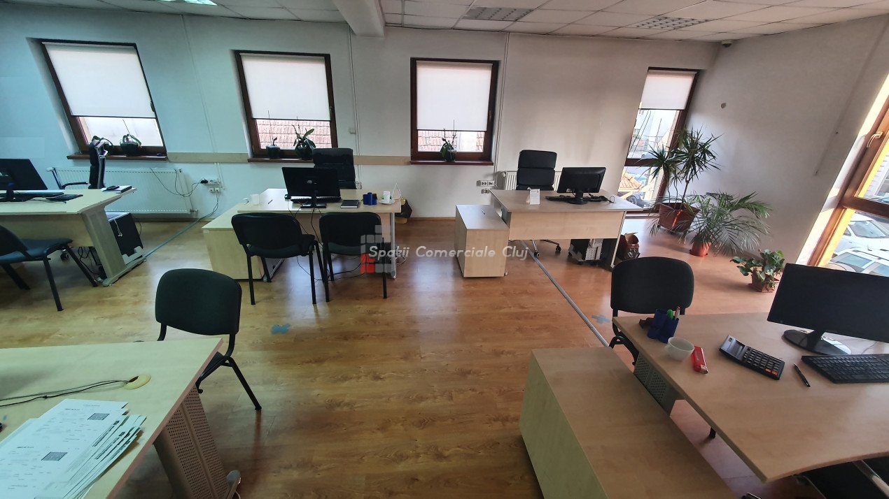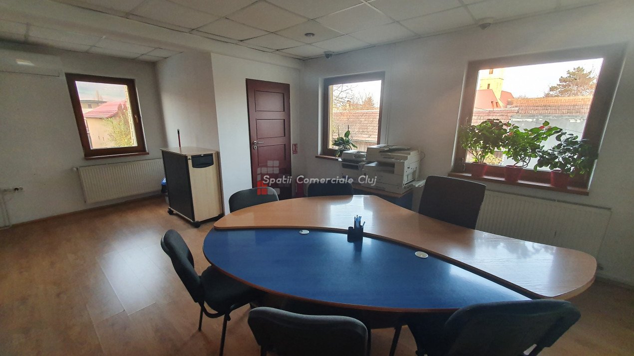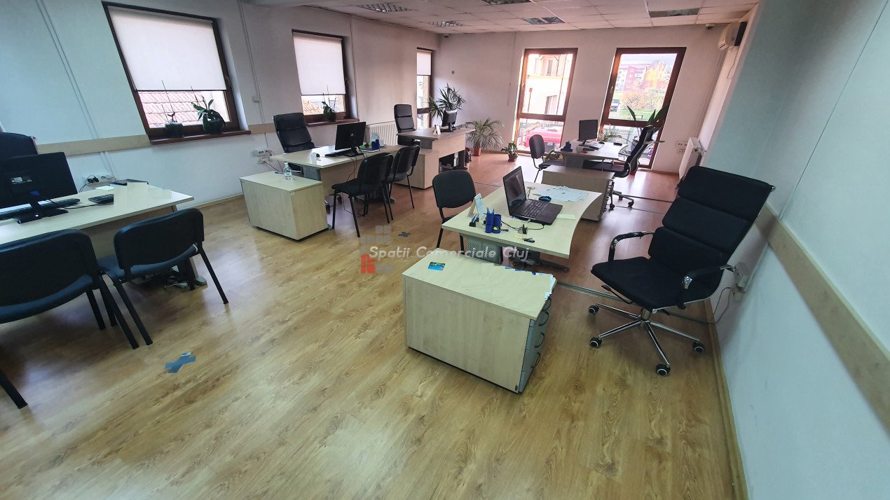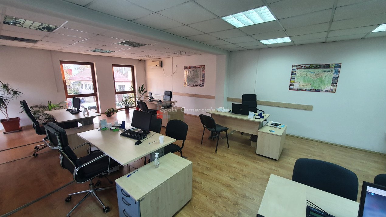 Spatii Comerciale Cluj ofera spre inchiriere spatiu pentru birouri/ cabinete in Floresti, zona Primariei, la 1 minut distanta de mijloacele de transport in comun si facilitati. Spatiul este compus din doua parti si este compartimentat open space. Suprafata utila pentru birouri este de 110 mp. Nu necesita investitii majore, incalzirea se face prin centrala termica proprie, climatizarea pe timp de vara cu ajutorul unui aparat de aer conditionat iar costurile de intretinere sunt mici. Este ideal pentru sediu firma sau cabinet. Garantia este echivalentul unei chirii lunare. Pretul nu include TVA. Pentru mai multe detalii si programare vizionari, nu ezitati sa ne contactati. ID-P34632